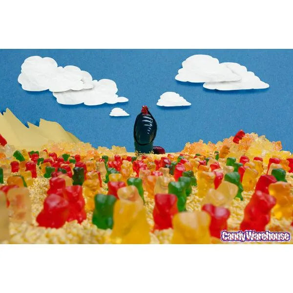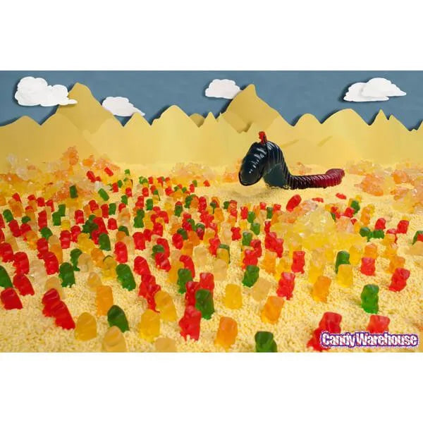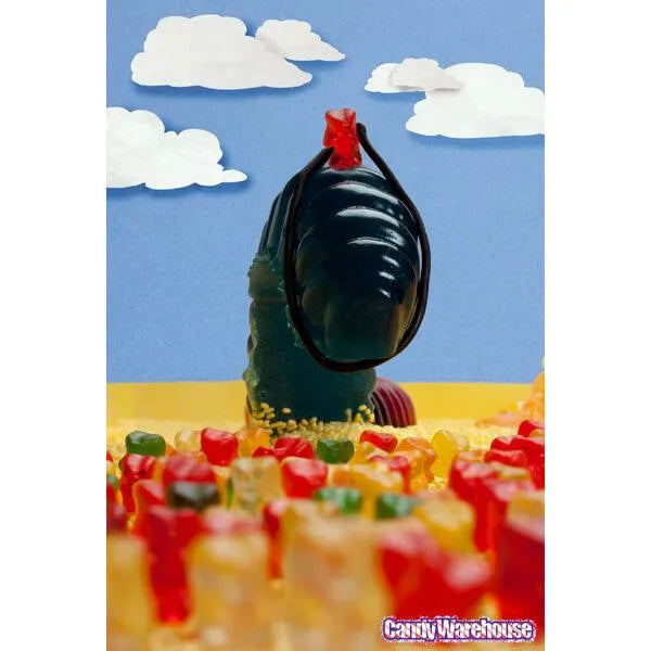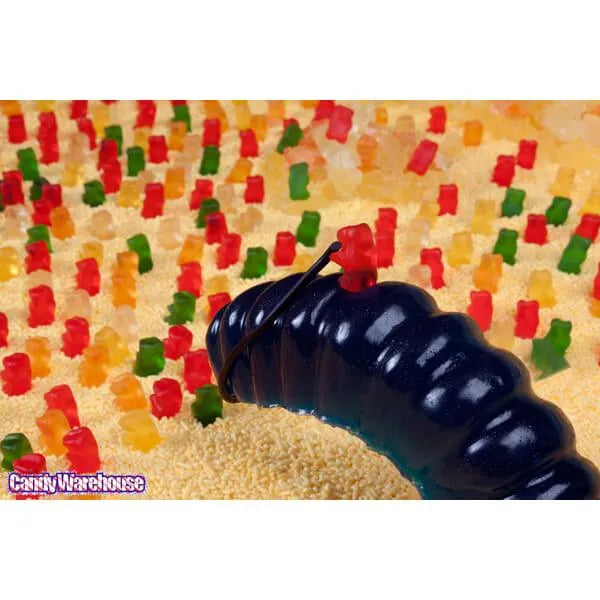 Behold, the Giant Gummy Worm – gentle leviathan of the gummy candy universe. This benign, segmented invertebrate might be low on the evolutionary totem pole compared to the mammalian gummy bear, but what it lacks in complexity it more than makes up for in delicious dual-flavored gummy goodness of Blue Raspberry and Red Cherry. Primitive candy-loving tribes would hunt these noble Giant Gummy Worm creatures in dirt made of cookies and pudding in hopes of feeding their families for weeks. Now you can do the same by ordering one.
