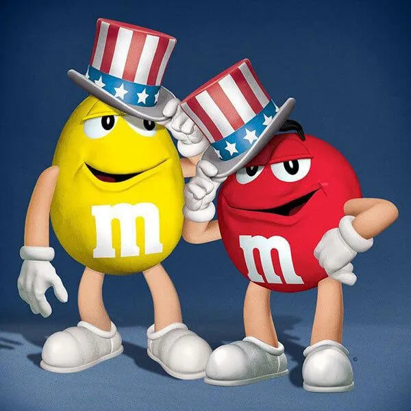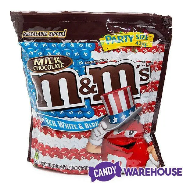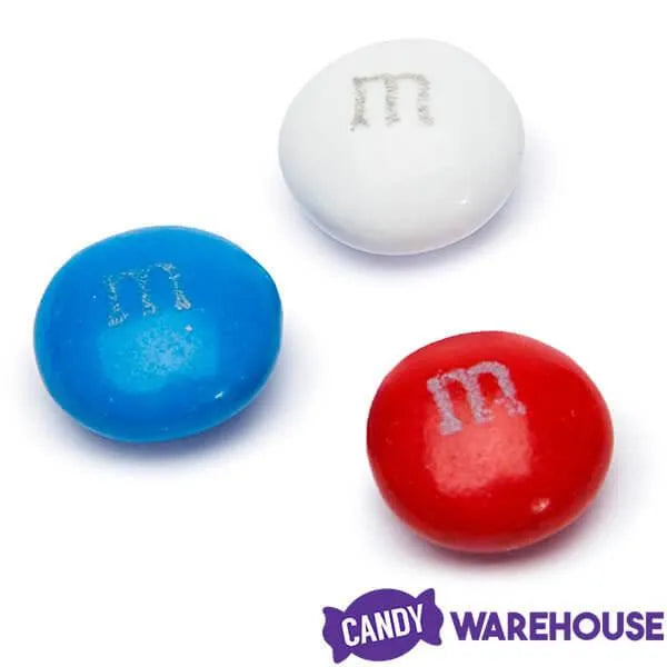 Classic milk chocolate M&M's candies featuring patriotic USA colors of red, white, and blue!