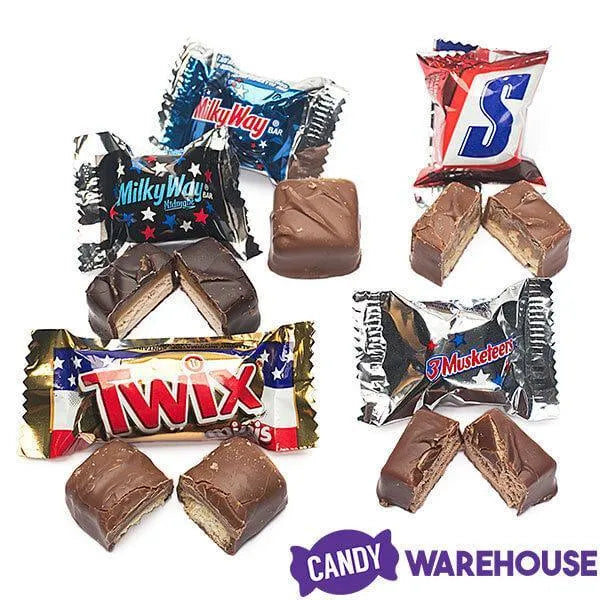 All of your favorite candy bars from Mars are offered in wrappers with patriotic USA colors of red, white, and blue! Milky Way, Snickers, Twix, Midnight Milky Way, and 3 Musketeers in bite-size minis are perfect for the candy dish at your 4th of July party or American political event. The founding fathers themselves would be proud of this heart-warming collection of delicious USA-themed candies.
