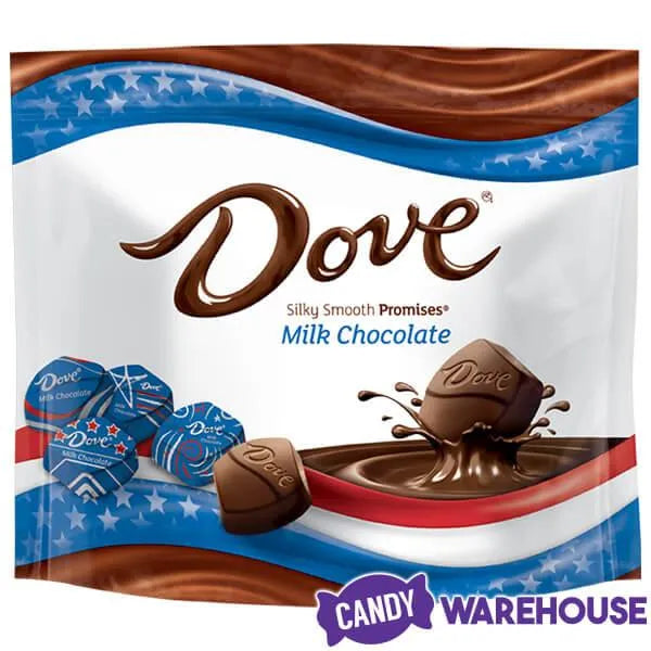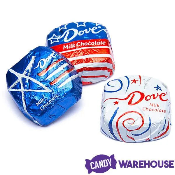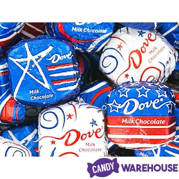 Yankee Doodle Dandy Candy! Patriotic all American colors of red, white, and blue shine brightly on these festive foil wrappers of Dove milk chocolate squares. Perfect for 4th of July parties or any patriotic event, Dove chocolate will have your guests proudly singing the Star Spangled Banner from pure joy.
