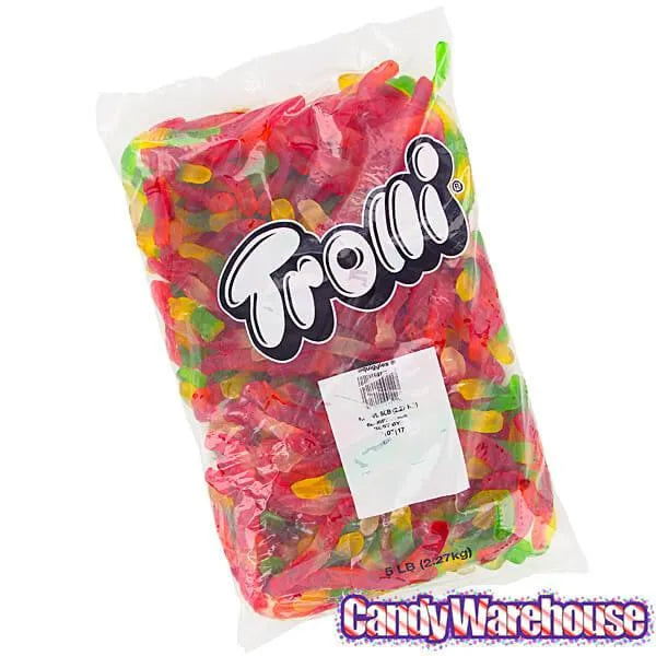 Bag contains 5 pounds of Trolli Gummy Worms Candy.