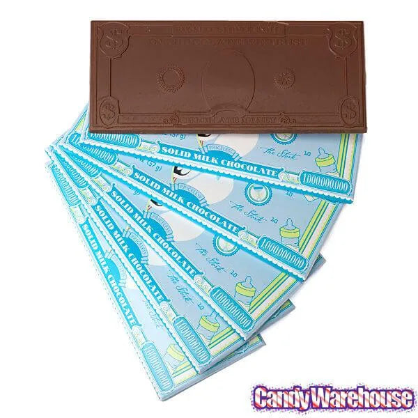Display box contains 24 It's a Boy Russell Stover One in a Billion Dollar Chocolate Bars, each with a net weight of 2 ounces.