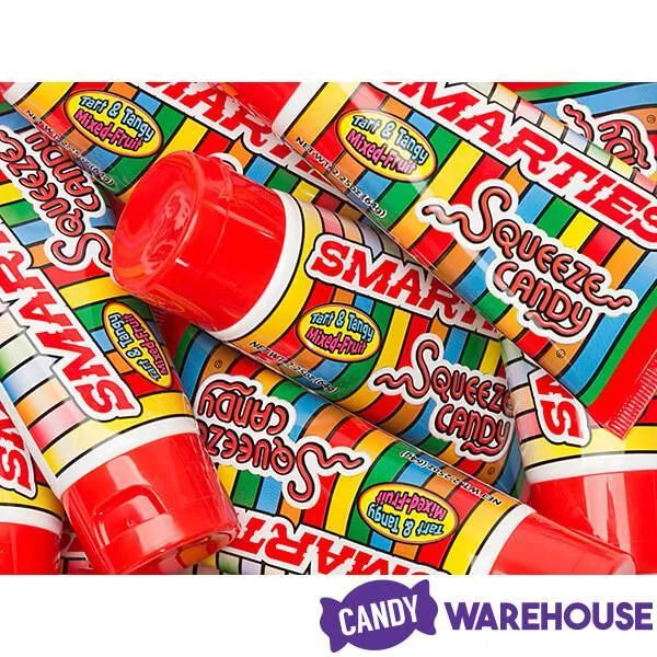 The sweetest twist ever on classic Smarties bite sized candy tablets, Smarties Squeeze Candy is the perfect creamy blend of tart and tangy in their famous fruit flavors. Kids will love these colorful rainbow colored squeeze tubes when they're offered as party favors at birthdays, graduations, and other festive events.