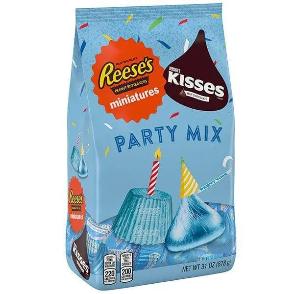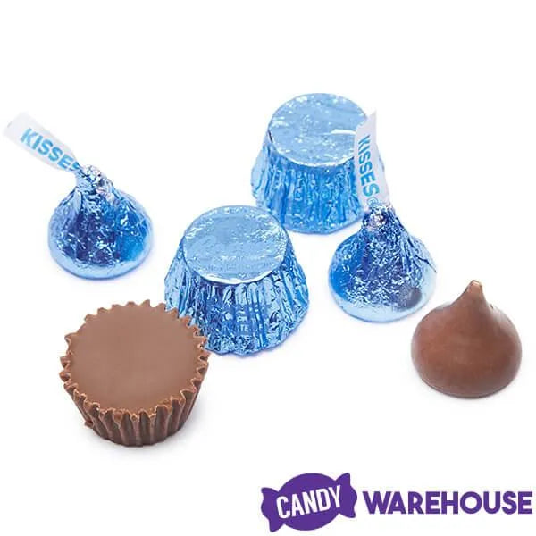 Bag contains 31 ounces of Light Blue Hershey's Kisses and Reese's Peanut Butter Cups Miniatures Candy.