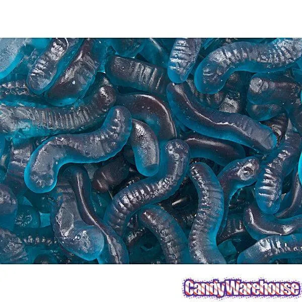 Bag contains 5 pounds of Blueberry-flavored Gummy Inch Worms.