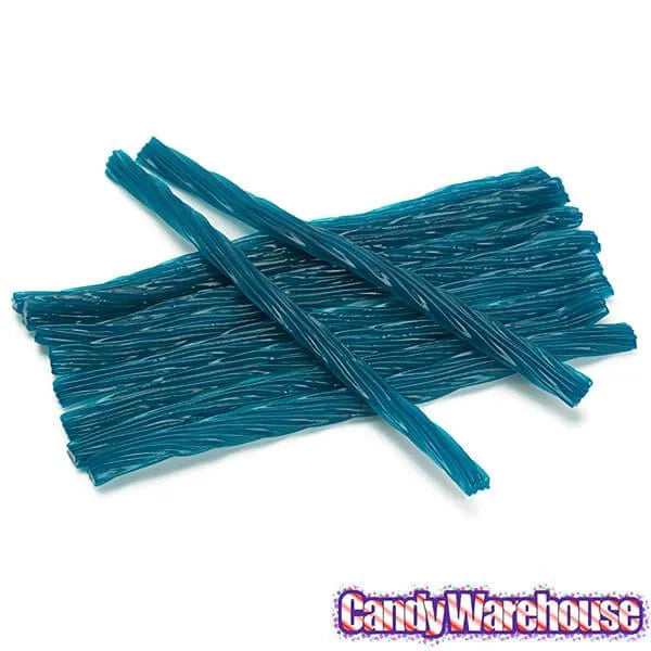 Case contains 12 / 16 ounce bags of Blue Raspberry Kenny's Juicy Licorice Twists.