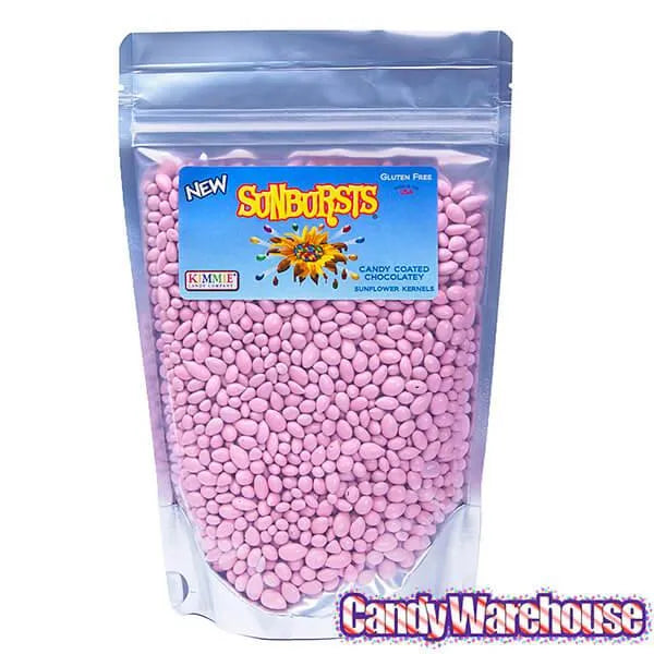 Bag contains 1 pound of Pink Sunbursts Chocolate Covered Sunflower Seeds Candy.