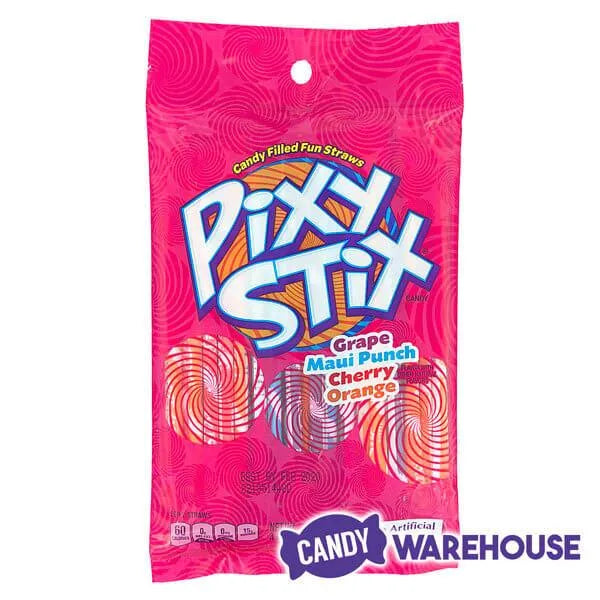 Box contains 12 Pixy Stix Candy Powder Filled Fun Straws Bags, each with a net weight of 4 ounces (about 49 pieces per bag).