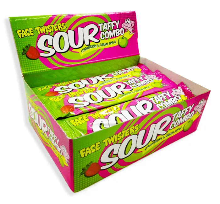 Face Twisters Sour Taffy Combo - Strawberry & Green Apple: 48-Piece Display
