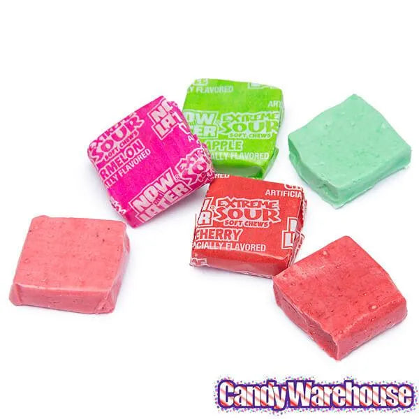 You've enjoyed the fruity goodness of Now and Later candy for years (after all, they've been around since 1962), but should you like to experiment with more sour intensity, we've got just the treat for you. This latest incarnation of Now and Laters is sure to have the tears flowing following the excruciating explosion of tart fruit flavors contained in every piece. Stock up now and keep your favorite candy dish brimming with these perky fruit chews!