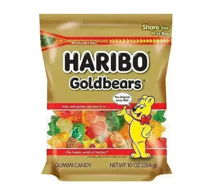 Haribo Gold-Bears Gummy Bears Candy Stand Up Peg Bags: 8-Piece Case