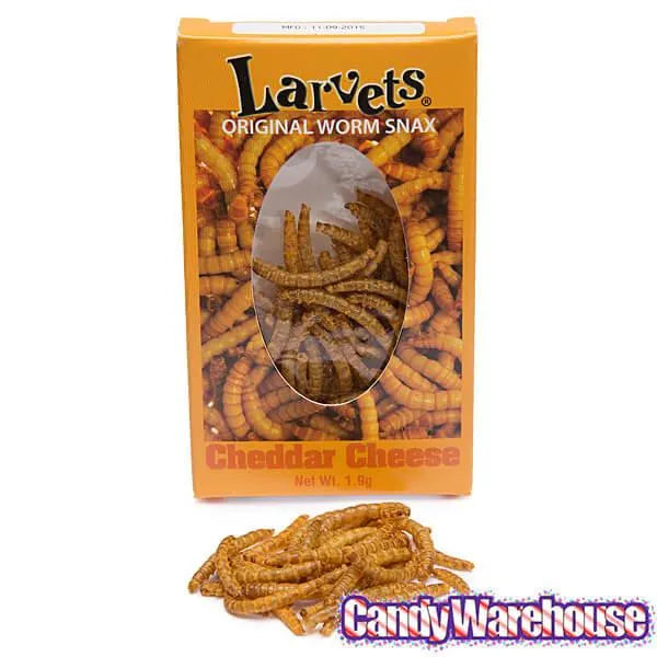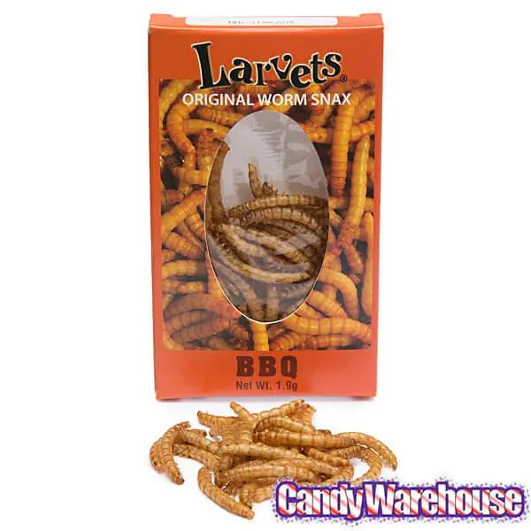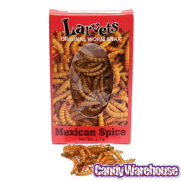 Yes, worms for your snacking enjoyment in three mouth-watering flavors: BBQ, Cheddar Cheese, and Mexican Spice. Packed with vitamins, minerals, and dirt, experience the amazing taste sensation of roasted larvae.... just kidding about the dirt.... these are very clean larvae, except of the sprinkling of spices.
