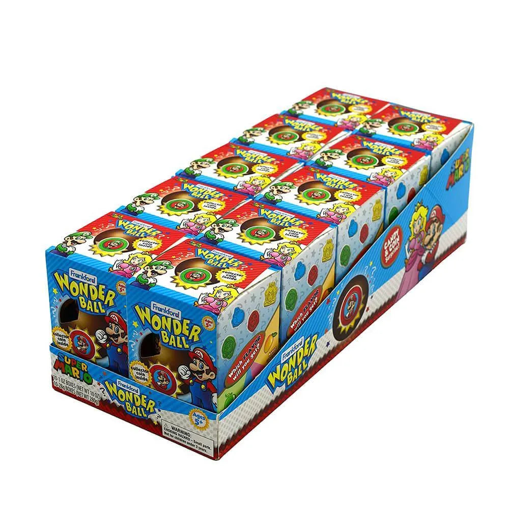 Up your game with this Super Mario Wonder Ball 10 piece pack. Every creamy Milk Chocolate Super Mario Wonder Ball includes candy inside plus stickers and a surprise collector's coin. Collect all 18 coins!