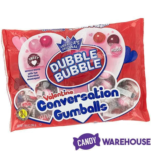 Bag contains 50 individually wrapped Valentine Conversation Gumballs Dubble Bubble Gum.