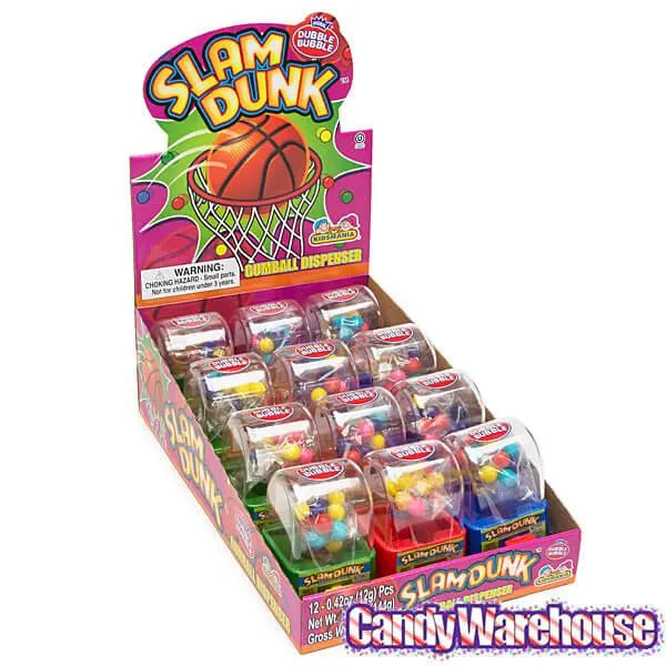 Display box contains 12 Slam Dunk Dubble Bubble Gumball Dispensers.