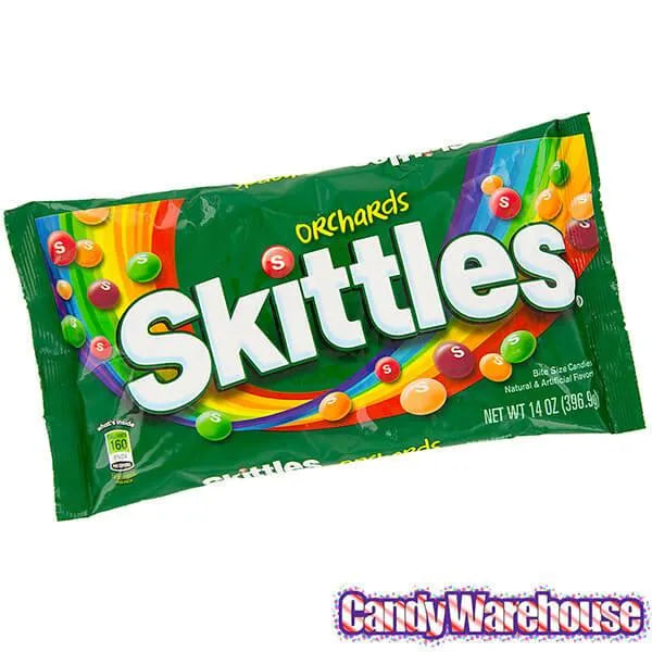 Bag contains 14 ounces of Orchards Mix Skittles Candy.