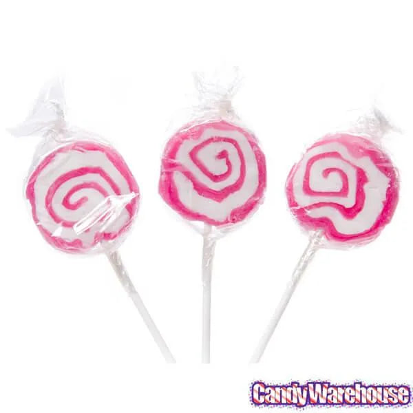 Bag contains 100 individually wrapped Petite Hypno Pops Pink & White Swirled Lollipops.
