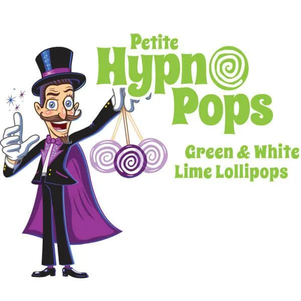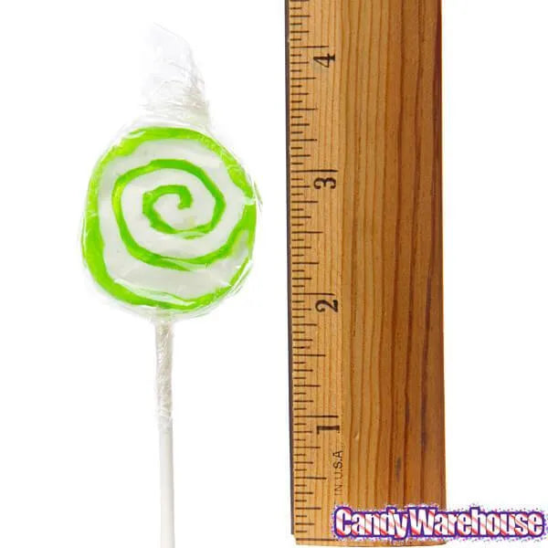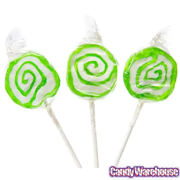 Bag contains 100 individually wrapped Petite Hypno Pops Green & White Swirled Lollipops.