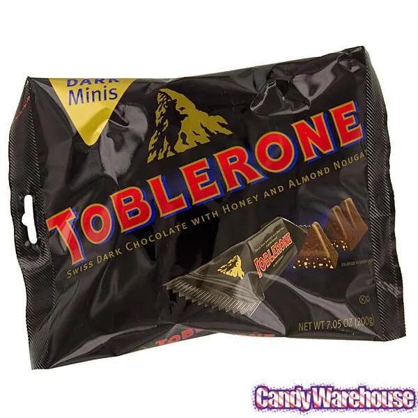 Bag contains 7 ounces of individually wrapped Toblerone Dark Chocolate Minis... that's about 15 bars.