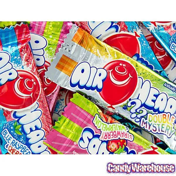 Have you ever been caught squeezing two AirHead flavors together in an attempt to create a new, ingenious flavor combination? (If not, then you really missed out on a great outlet for creative expression). Well, great news for those of you who were never satisfied with simply enjoying one flavor of AirHeads at a time: new AirHeads Mini Striped Bars take the guess work out of creating the perfect flavor combination. These tiny taffies come in stripes of Strawberry/Watermelon, Blue Raspberry/Cherry, and Double Mystery flavors. Eat the two sides separately, or munch on both at once.
