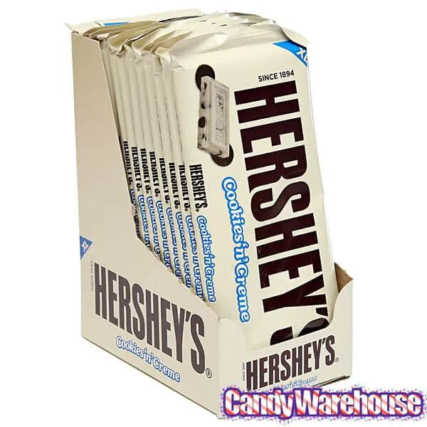 Display box contains 12 Hershey's Cookies n Creme Jumbo Candy Bars, each with a weight of 4 ounces.