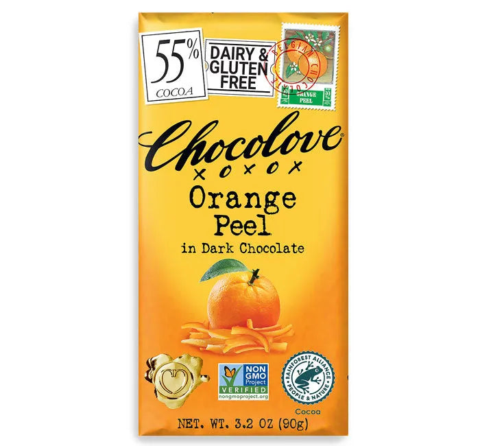 Chocolove Orange Peel Dark Chocolate Candy Bars: 12-Piece Box