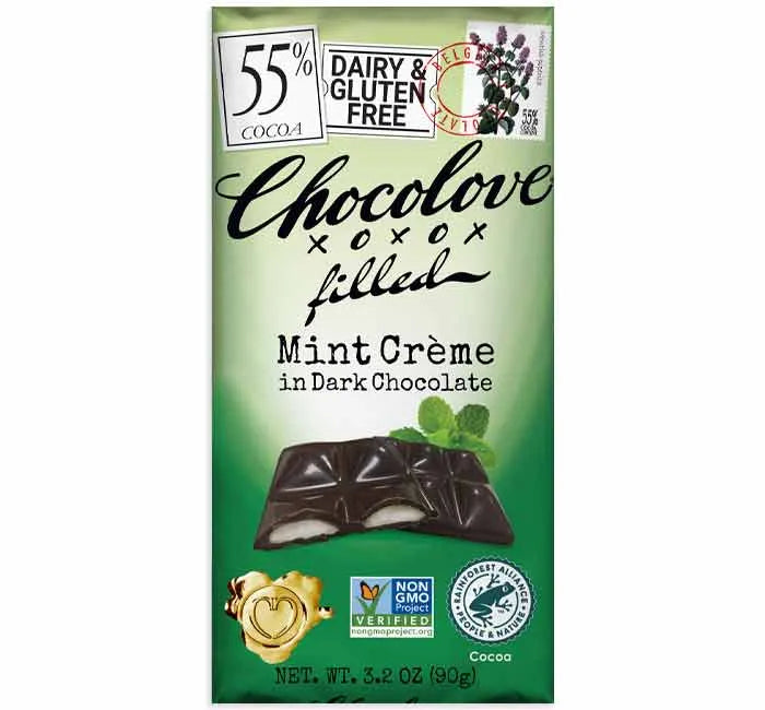 Chocolove Mint Creme Dark Chocolate Candy Bars: 10-Piece Box