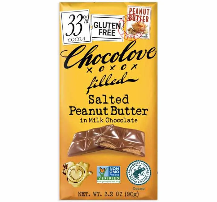Chocolove Salted Peanut Butter Milk Chocolate Candy Bars: 10-Piece Box