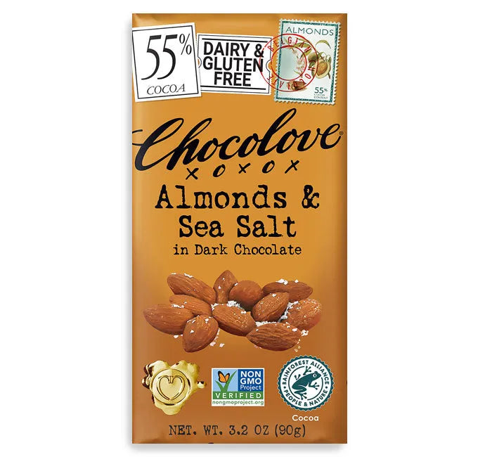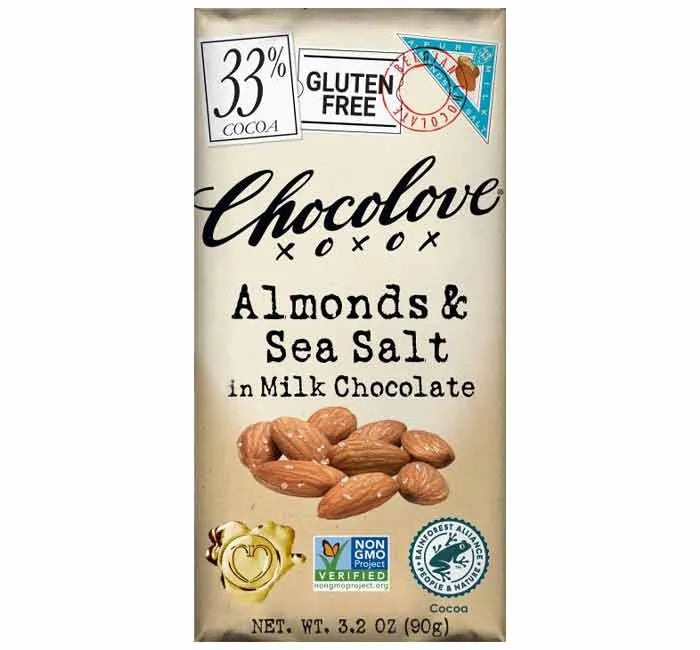 Chocolove Almonds & Sea Salt Milk Chocolate Candy Bars: 12-Piece Box