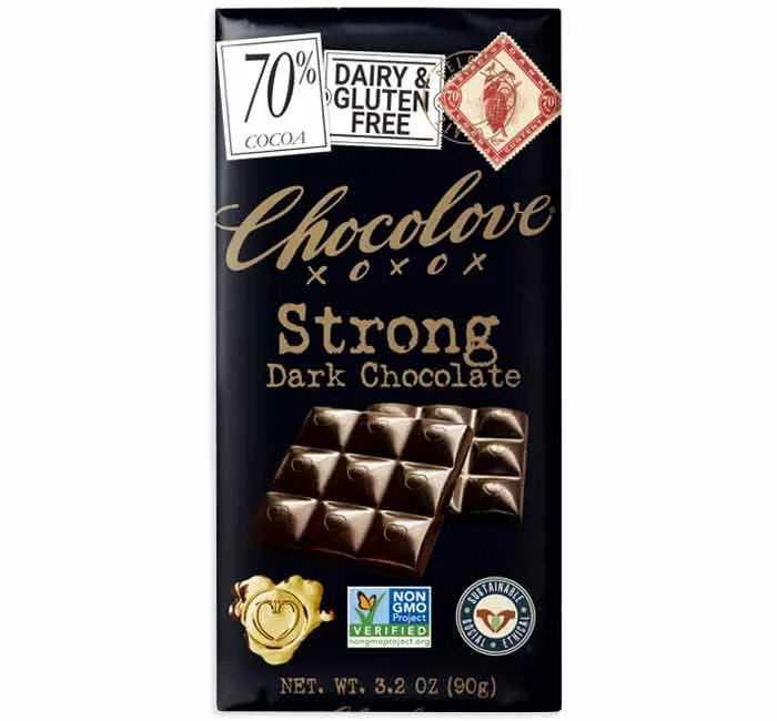 Chocolove Strong Dark Chocolate Candy Bars: 12-Piece Box