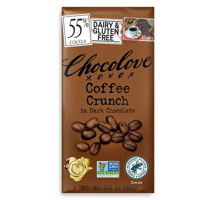 Chocolove Coffee Crunch Dark Chocolate Candy Bars: 12-Piece Box