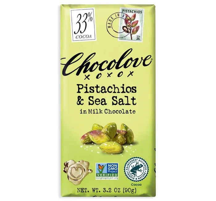 Chocolove Pistachios & Sea Salt Chocolate Candy Bars: 12-Piece Box