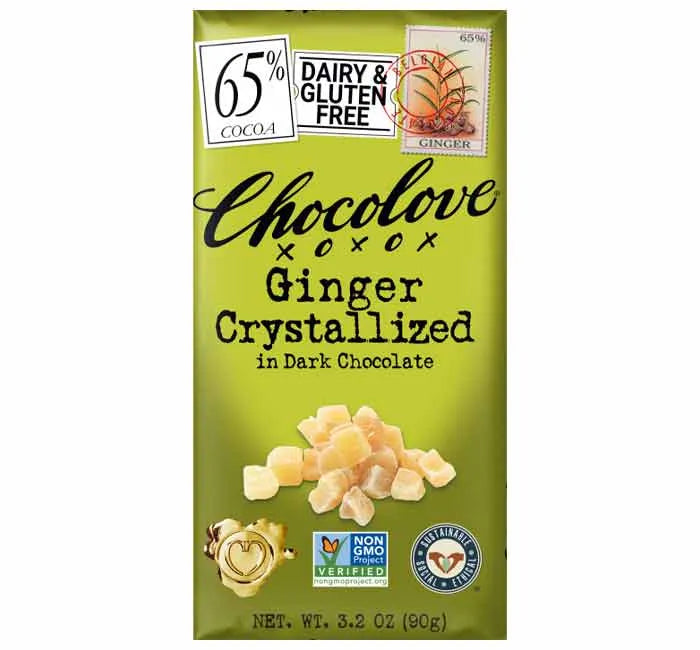 Chocolove Ginger Crystallized Dark Chocolate Candy Bars: 12-Piece Box