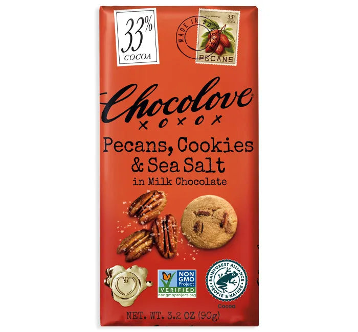 Chocolove Pecans, Cookies & Sea Salt Milk Chocolate Candy Bars: 12-Piece Box
