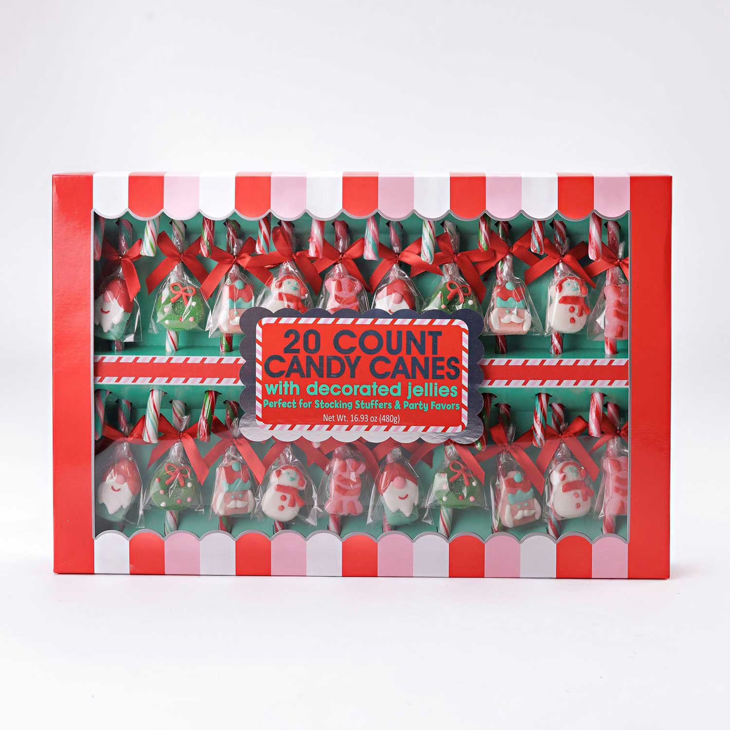 Candy Canes with Christmas Decorated Jellies: 20CT Box
