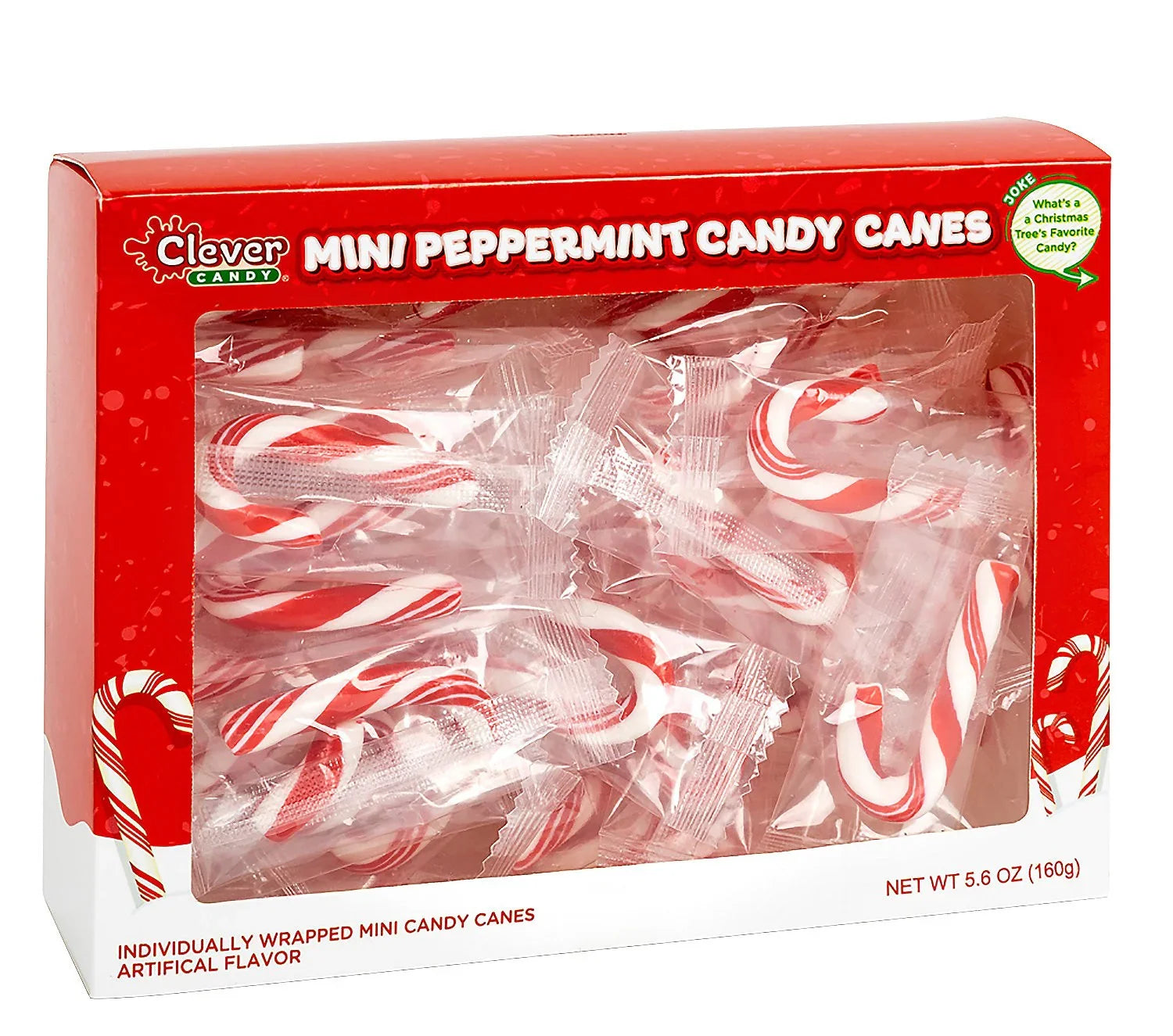 Clever Candy Christmas Peppermint Mini Candy Canes Pack: 24-Piece Case