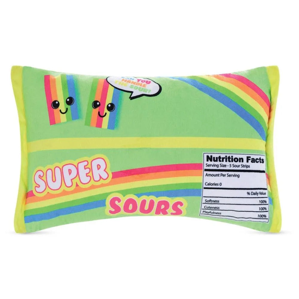 Get your 'sweet' fix with this Super Sours Strawberry Scented Plush! This cloud-like companion is made of soft fleece and contains 5 shimmering candy plush pieces inside. Plus, the whole thing's scented with delicious strawberries! And don't worry - there's a handy zipper closure so those yummy treats won't fall out! It's all your favorite sugary flavors in one 'super' package! Candy Warehouse - snackin' made easy!