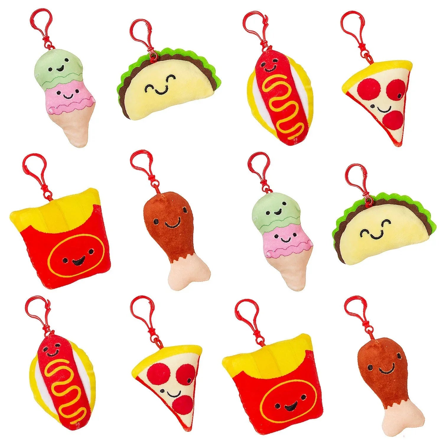 Stuffed Fast Food Backpack Clip Keychain: 12-Piece Bag