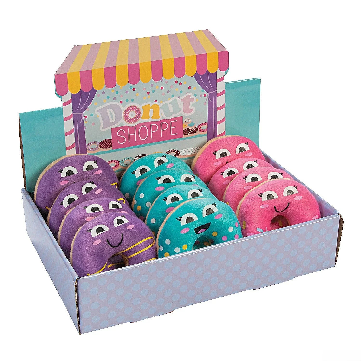Plush Smiling Donuts in Box: 12-Piece Display