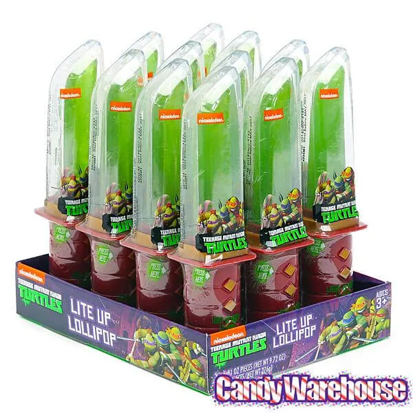 Display contains 12 Teenage Mutant Ninja Turtles Lollipop Candy Light-Up Swords.
