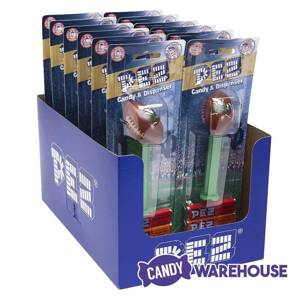 Display box contains 12 blister packs of PEZ NCAA Notre Dame University Football Candy Dispensers and Refill Cartridges.