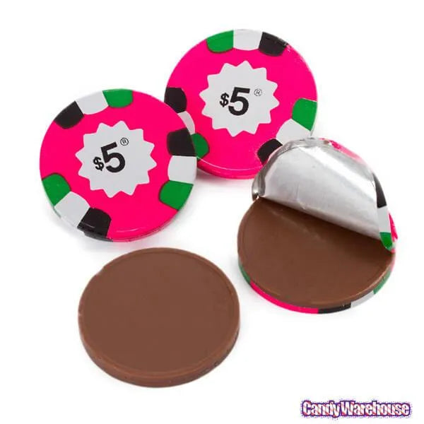 Premium milk chocolate, wrapped in foil to look and feel exactly like casino gaming chips. Delivered in four rows of $25 and $5 chocolate poker chips all stacked and racked just like you won them at the casino.... 36 pieces per rack.