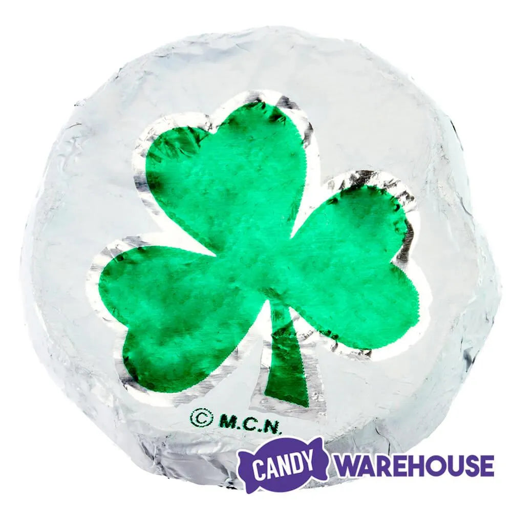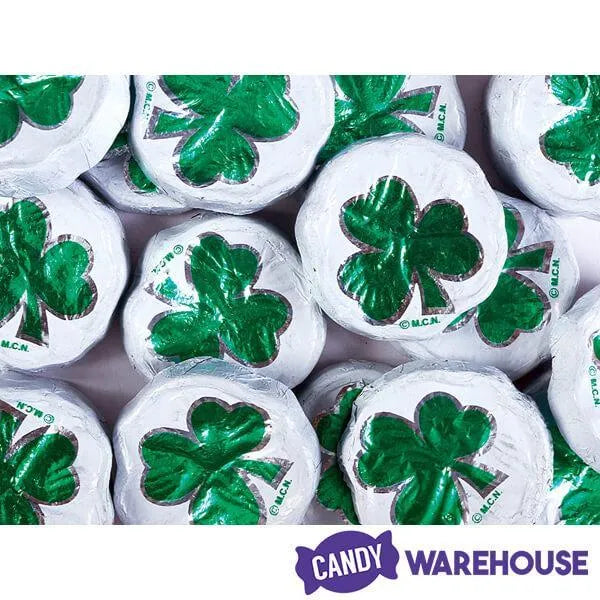 Bag contains 5 pounds of Foiled Milk Chocolate Shamrocks Clover Discs.