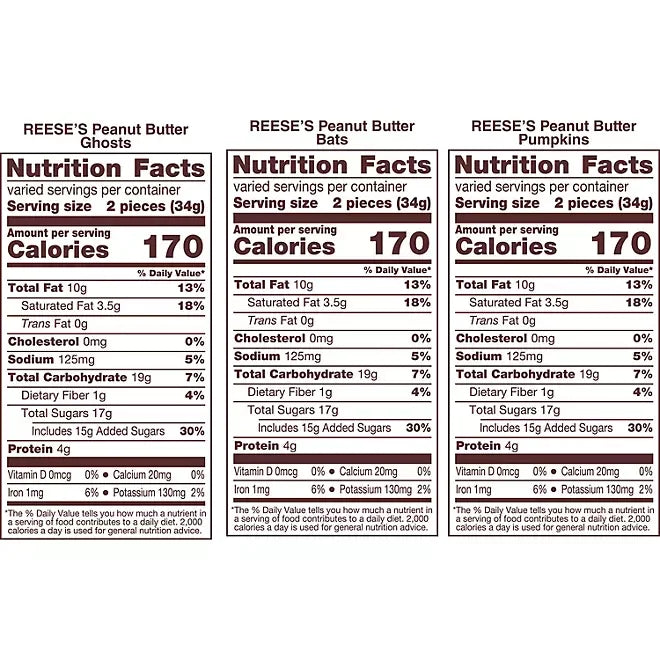 Bag contains 100 Reese's Halloween Peanut Butter Milk Chocolate Spooky Shapes