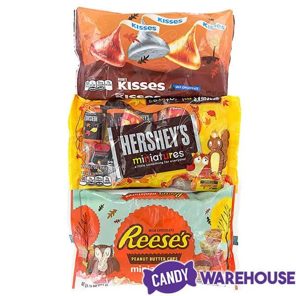 Hosting a party or event this fall? Stock your candy dish with a full assortment of autumn candy favorites from Hershey Chocolate! Featuring three of the most popular chocolates from Hershey in festive fall wrappers, this assortment of candy classics is sure to satisfy. Welcome the coming of harvest and fall foliage with delicious chocolate miniatures from Hershey's!