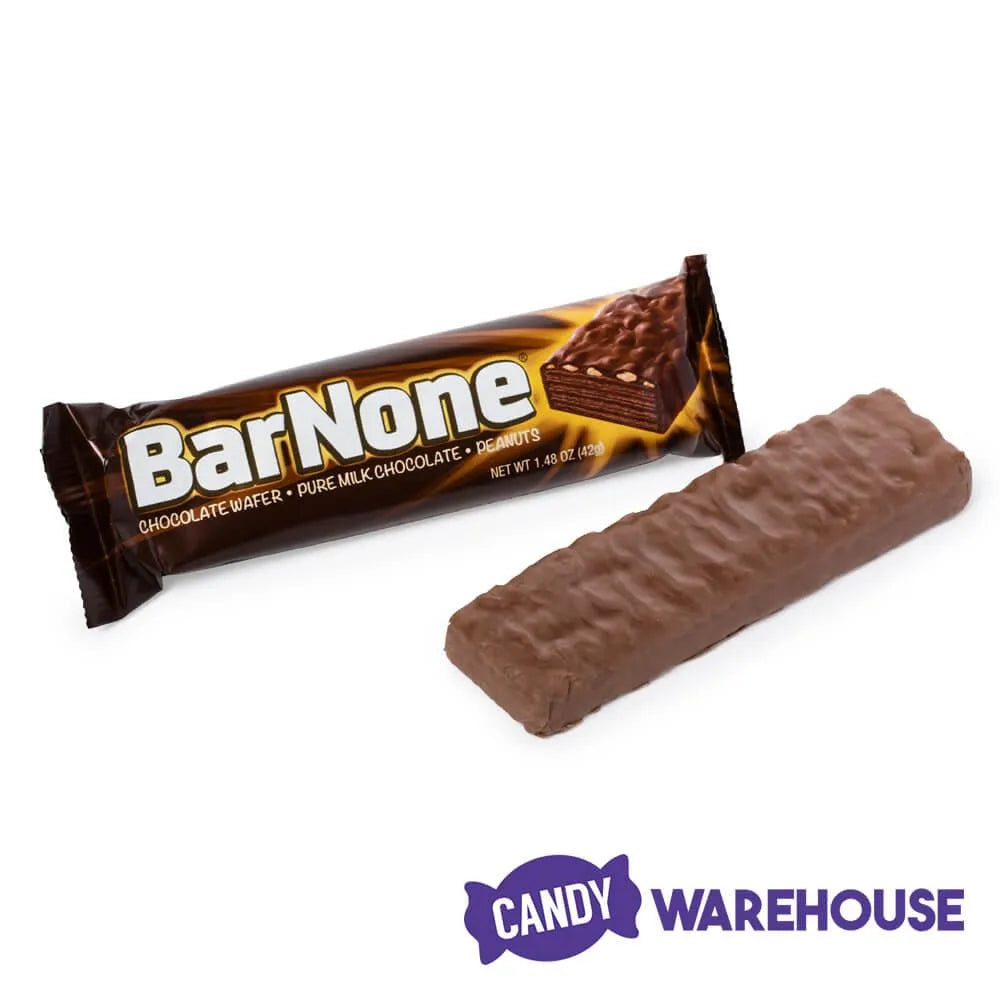 Elevate everyday snacks to new heights of palate-pampering pleasure with BarNone milk chocolate wafer bars. For those not satisfied with settling for one layer of chocolate, the Bar None candy bar provides three. A crisp chocolate wafer on the bottom is topped with a layer of rich chocolate cream and crunchy crushed peanuts. The whole delectable thing is then drenched in pure milk chocolate to create a wafer chocolate bar that delivers triple the deliciousness. Dip it into your hot coffee, and you'll see what we mean. Once retired, the very popular BarNone Bars were revived and re-launched by Iconic Candy in 2019 to the joy of chocolate lovers everywhere. Candy Warehouse has a 24-piece box with your name on it.