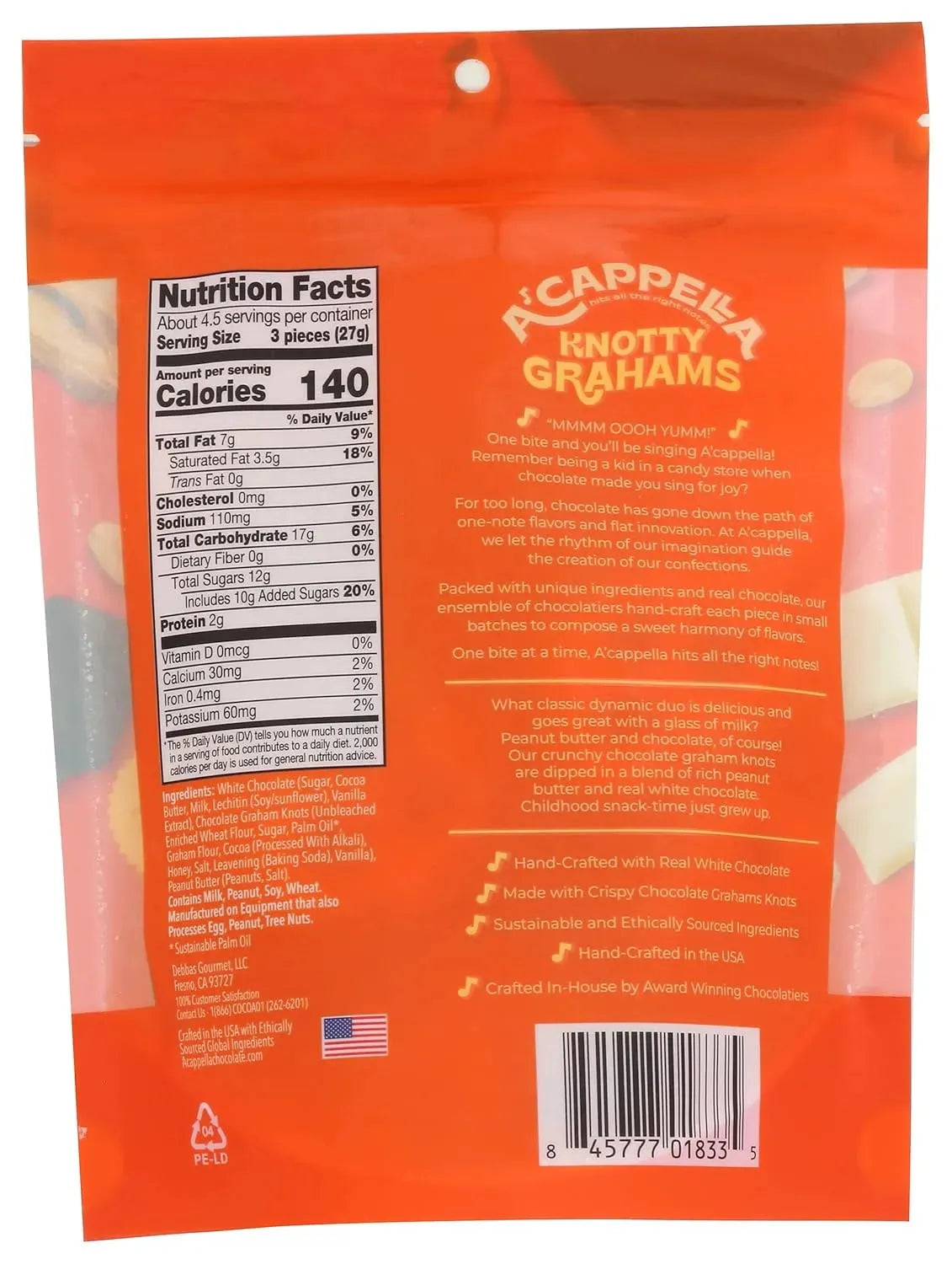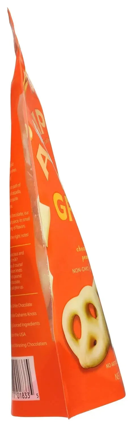 Reimagine snack time and late-night treats with these scrumptious A’Cappella Knotty Grahams chocolate peanut butter knots. As twisted as they are tempting, these chocolate graham knots are full of nooks and crannies that hold layers of creamy peanut butter and a creamy white chocolate coating. They’re smooth, rich, and crunchy — everything you want in a treat! Each order comes with a 6-pack of peanut butter and white chocolate knots in resealable 4.5-ounce bags. And since the ingredients are non-GMO and include fair-trade chocolate, you can feel as wonderful serving these Candy Warehouse favorites to your loved ones and co-workers as you do eating them.
