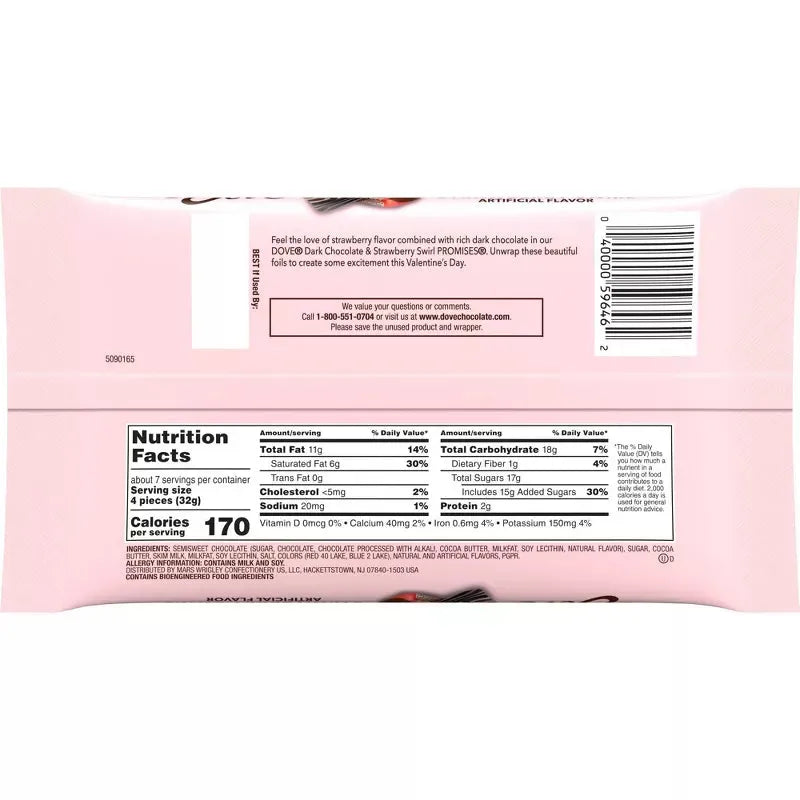 Dove Valentine's Dark Chocolate & Strawberry Swirl: 28-Piece Bag