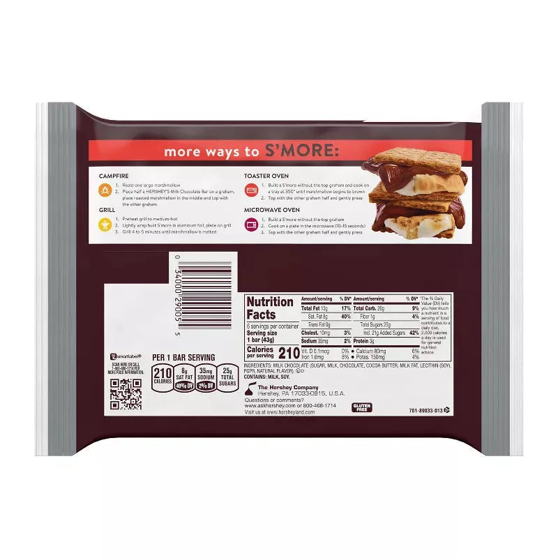 Enjoy the classic, creamy taste of HERSHEY'S Milk Chocolate Candy Bars with this 6-pack of full-size bars! Perfect for snacking, sharing, and baking, these kosher-certified, gluten-free chocolate bars are wrapped for lasting freshness and on-the-go convenience.