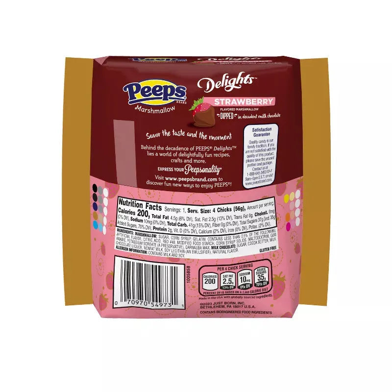 Make your Easter celebrations extra special with PEEPS® Delights™ Strawberry Flavored Marshmallow Chicks Dipped in Milk Chocolate! These decadent treats feature sweet strawberry-flavored marshmallow paired with rich, creamy milk chocolate, creating a perfect balance of fruity and chocolatey goodness.